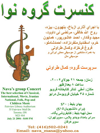 'کنسرت گروه نوا در تورنتو، جمعه ۲۱ جولای'