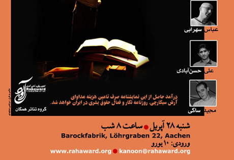 'اجرای نمايشنامه "مرثيه ای برای شکسپير" کار منوچهر رادين، نوشته شهروز رشيد در آخن، ۲۸ آوريل'
