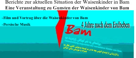 چهار سال پس از زلزله بم، برنامه ای از انجمن "پالم بم" و کانون مهر در باره کودکان بمی، شنبه اول دسامبر در شهر هانوفر آلمان