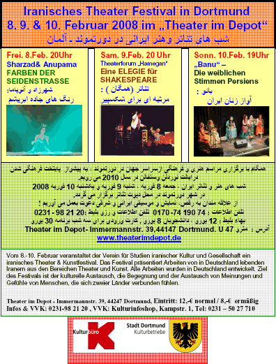 شب های تئاتر و هنر ايرنی در شهر دورتموند آلمان، ۸ - ۹ و ۱۰ فوريه