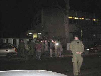 همينطور مزدک شالگونی و بهادر نيکفر از اعضای فعال شبکۀ جوانان ايرانی که تازه وارد مراسم شده بودند، برای جلوگيری از ضرب و شتم به طرف دوستان ديگر رفتند که با ضربات مشت و لگد محافظين مواجه شدند. در همين هنگام مأمورين پليس با اطلاع رسانی هژير پلاسچی ديگر فعال شبکۀ جوانان ايرانی، به درون مراسم رفتند و با مداخله از ادامۀ ضرب و شتم معترضين جلوگيری کردند.