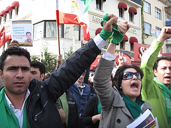 در بين اين مراسم معترضين خواستار آزادی سران جنبش سبز شدند و با شور و حرارت خاصی شعار " موسوی، کروبی آزاد بايد گردند" و " رهنورد، کروبی آزاد بايد گردند " سر داده شد. در پايان اين مراسم بيانيه ای از سوی يکی از شرکت کنند گان قرائت شد. [گزارش تصويری از تجمع اعتراضی ايرانيان مقابل سفارت جمهوری اسلامی در آنکارا در روز جهانی کارگر] Copyright: gooya.com 2016