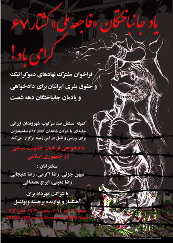 در بيست وسومين سالگرد فاجعه کشتار بزرگ زندانيان سياسی ايران در تابستان ۱۳۶۷ به وسيله جمهوری اسلامی، و در ادامه تلاش های افراد، شخصيت ها و نهادهای بسياری که از سال ها پيش در زمينه زنده نگاه داشتن ياد قربانيان و پيشبرد امر دادخواهی کوشا بوده اند، و با توجه به اهميتِ داشتن نگاهی روشن به اين گذشته و پاسخی درست که از طرف ايرانيان و جهانيان پذيرفته شود، کميته مستقل ضد سرکوب شهروندان ايرانی با شرکت شاهدان کشتار ۶۷ و صاحبنظران، جلسه ای برای بررسی و تامل در اين زمينه برگزار می کند.