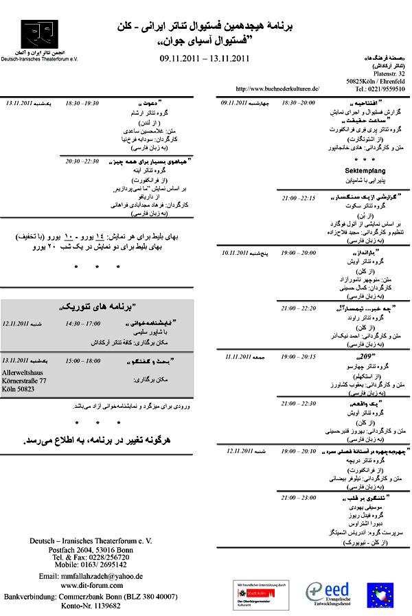 کلن: برنامه هيجدهمين فستيوال تئاتر ايرانی، از نهم تا سيزدهم نوامبر